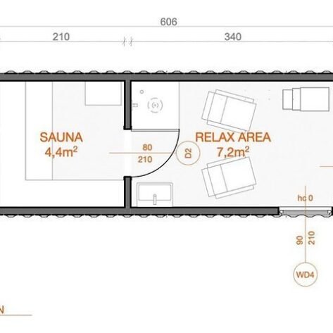 Conteneur Sauna de 15 m² avec espace de repos « clé en main »