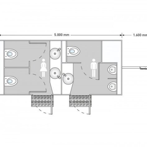 Remorque Sanitaire double 5 WC 3 Urinoirs 6×2,40 mètres