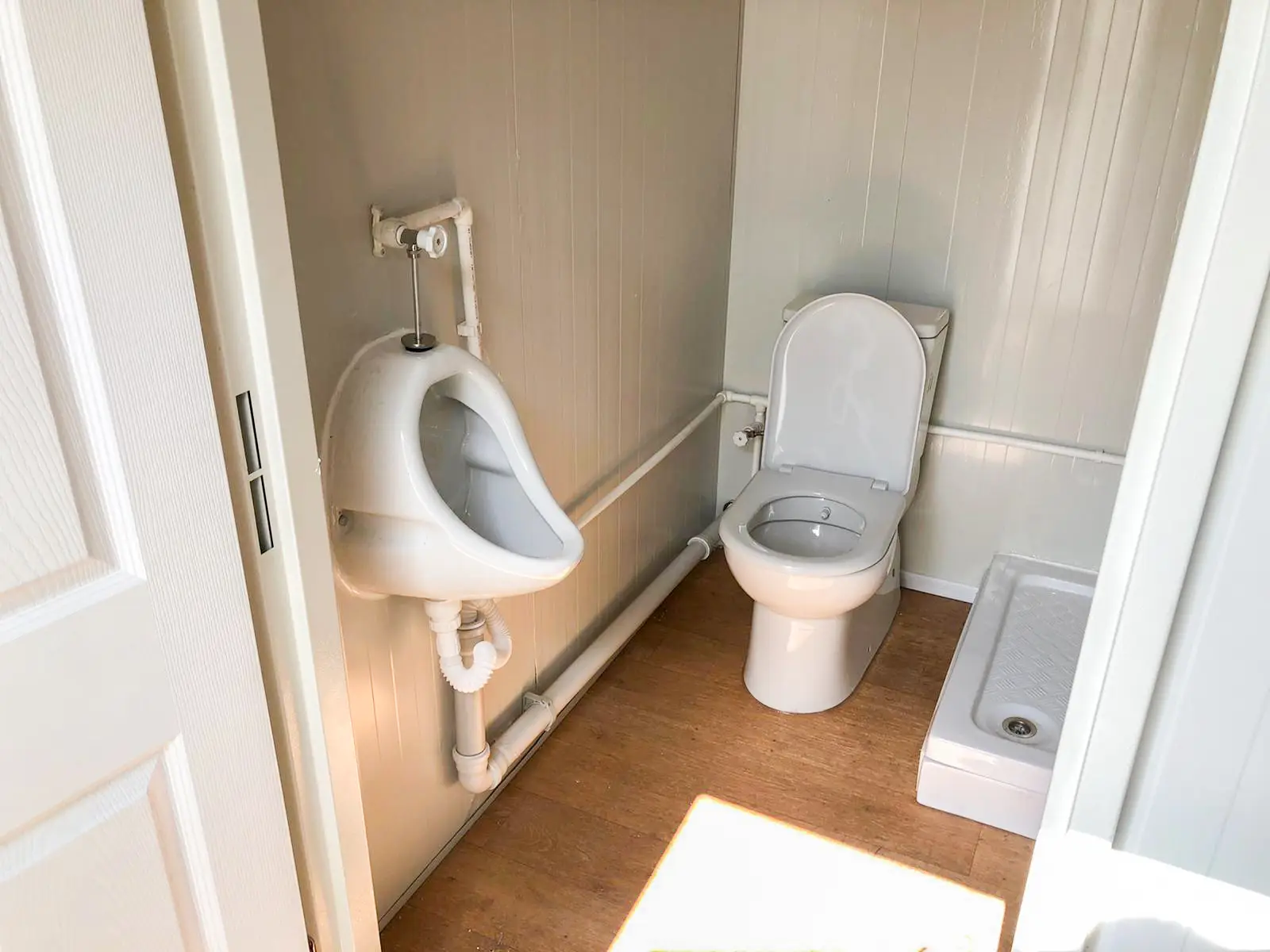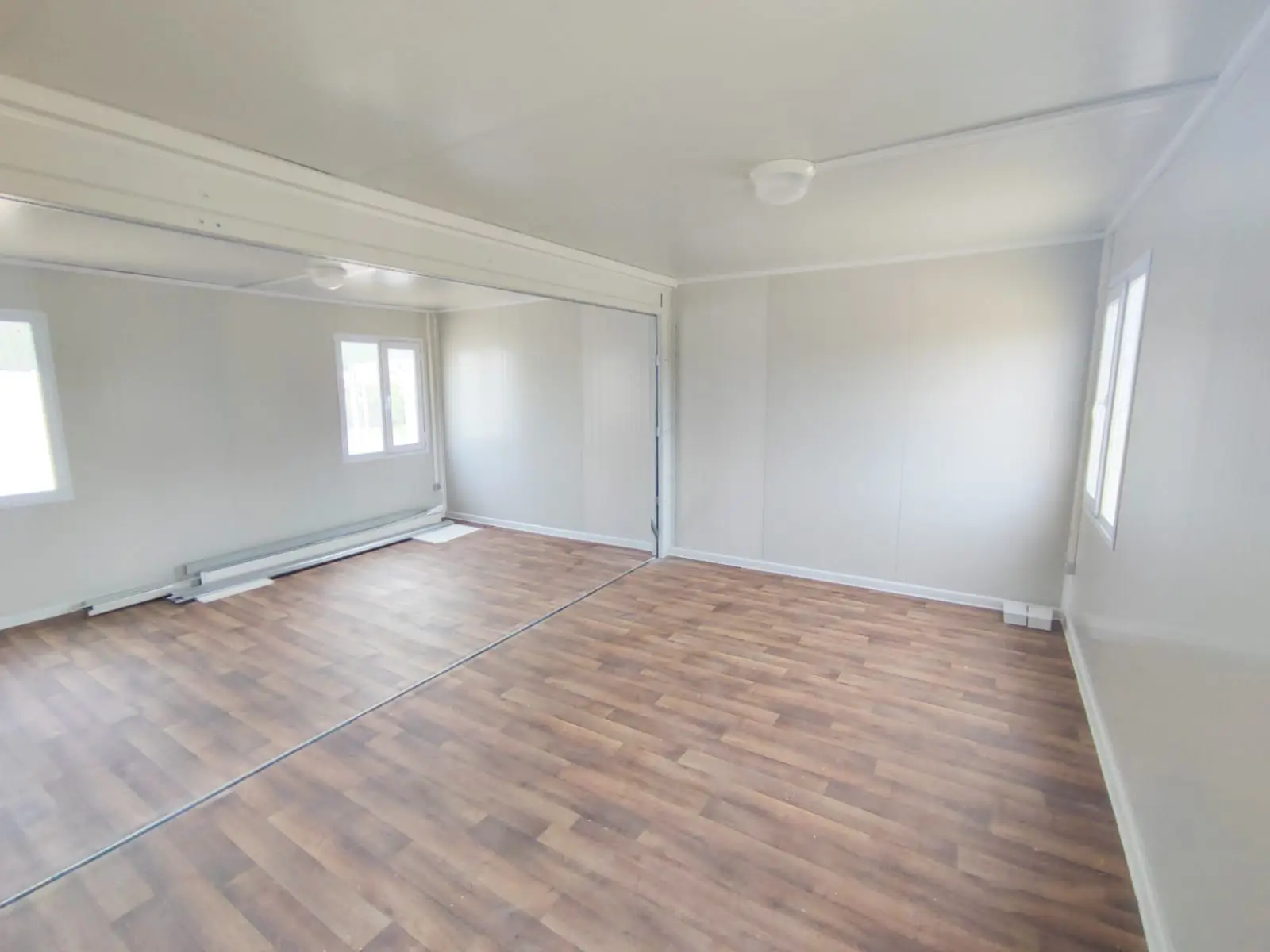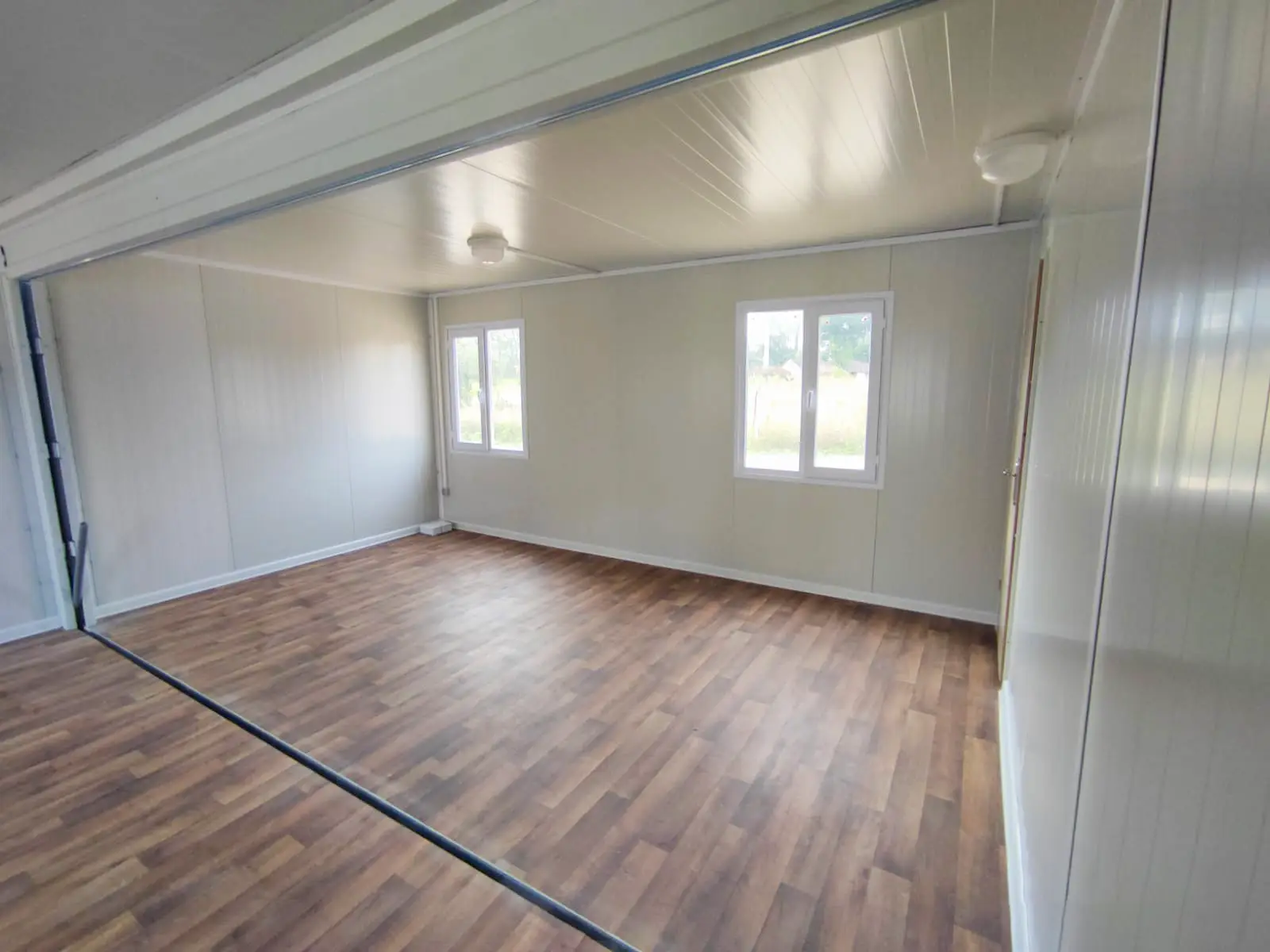 2x chambre, 1x porte d’entrée, 1x porte intérieure, 4x fenêtre, 1x toilette avec lavabos, 1x douche, 1x cuisine