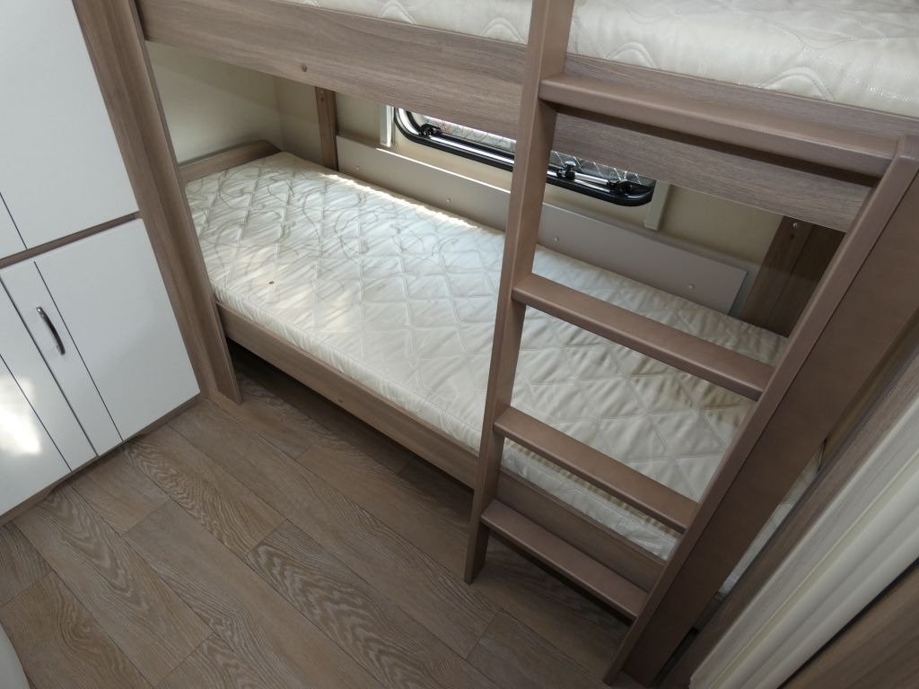 Surfaces de couchage : Avant (200×138/109) ; lits superposés (2x185x70) ; milieu (197×113)
