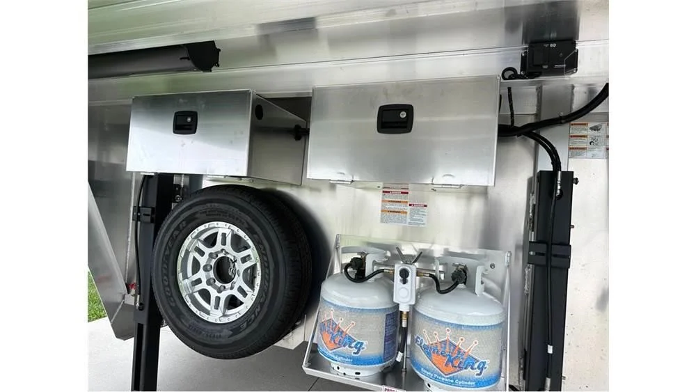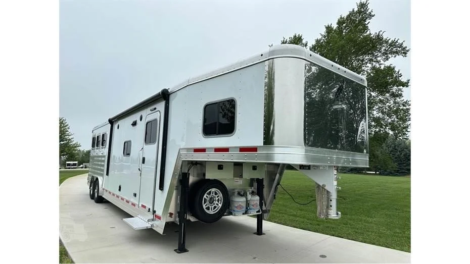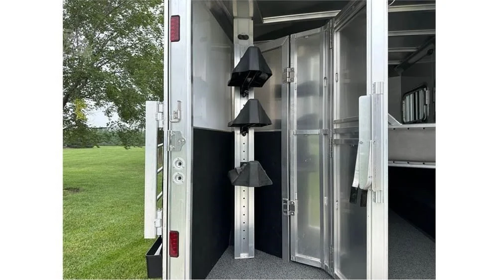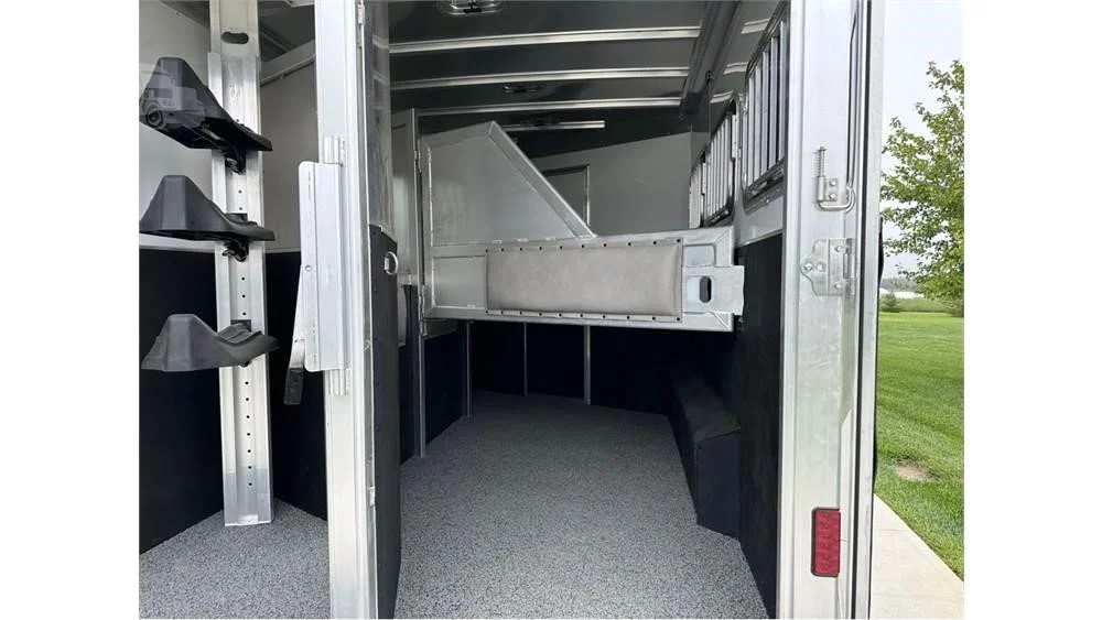 Nouveau modèle Featherlite 3 chevaux LQ avec ensemble de quartiers d’habitation de 11′ (S11B), intérieur en frêne diamant, roues en aluminium, pneu/roue de secours, revêtement de sol facile d’entretien, sellerie arrière pliable avec barres de couverture pivotantes, rampe arrière pleine largeur. , MANGRES AVEC GRAND RANGEMENT VERROUILLABLE EN DESSOUS, PADS DE STOCKAGE, PORTE DE DÉCHARGEMENT AVEC FENÊTRE Abattante ET BARRES, FENÊTRES Abattantes SUR LES CÔTÉS DE LA TÊTE ET DE LA QUEUE, COULEUR INTÉRIEURE CENDRE BLANCHE, CANAPÉ COULISSANT, VÉRINS HYDRAULIQUES ÉLECTRIQUES, DOUBLE RÉSERVOIRS DE PROPANE, TOIT DE FOURNAISE CANALISÉ Climatisation,. AUVENT RÉTRACTABLE ÉLECTRIQUE AVEC BANDE ÉCLAIRANTE À LED, SYSTÈME SONORE ET ENSEMBLE D’ÉCLAIRAGE PREMIUM, FEU DE CHARGE ARRIÈRE.
